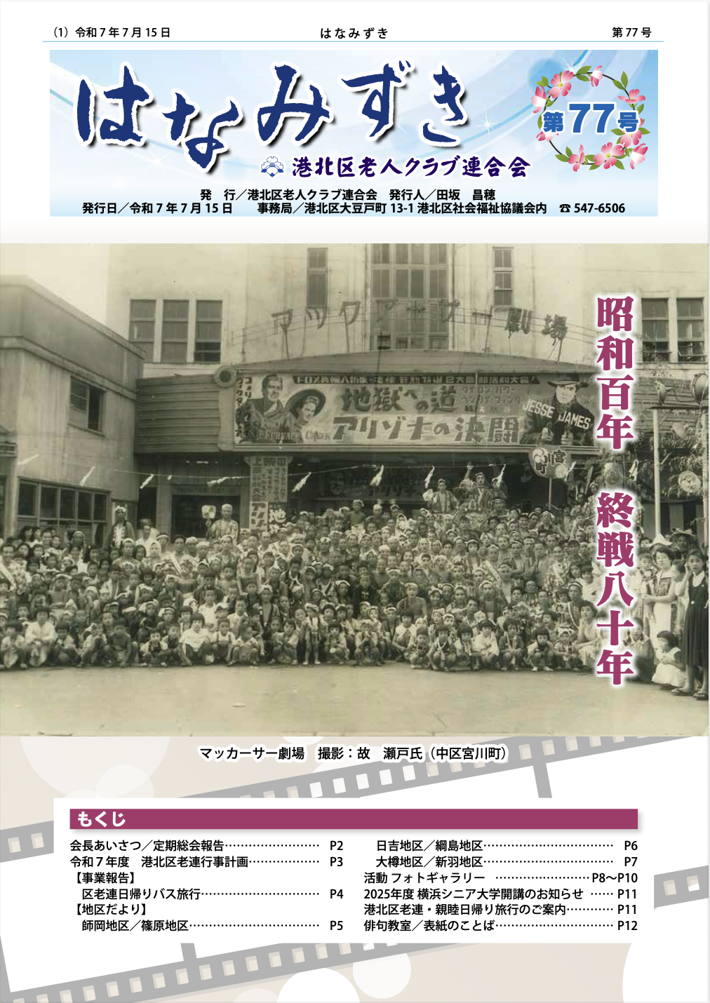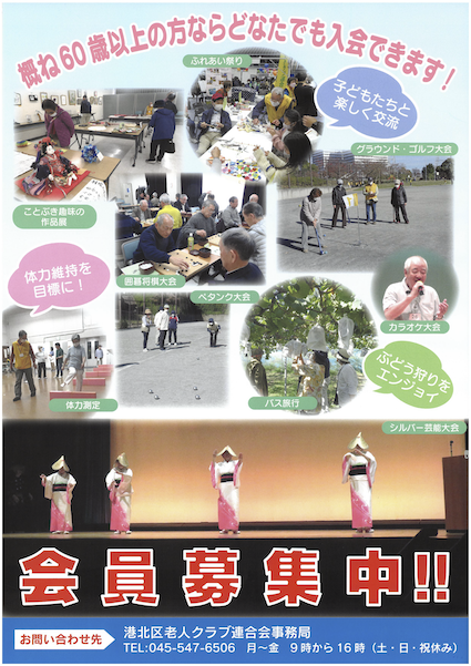 港北区老人クラブ連合会の会報誌です。老人会のメンバーのため作成されています。